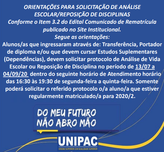 Os links também estão disponíveis no site da Instituição. Acesse: https://www.unipacuberlandia.com.br/aula-remota