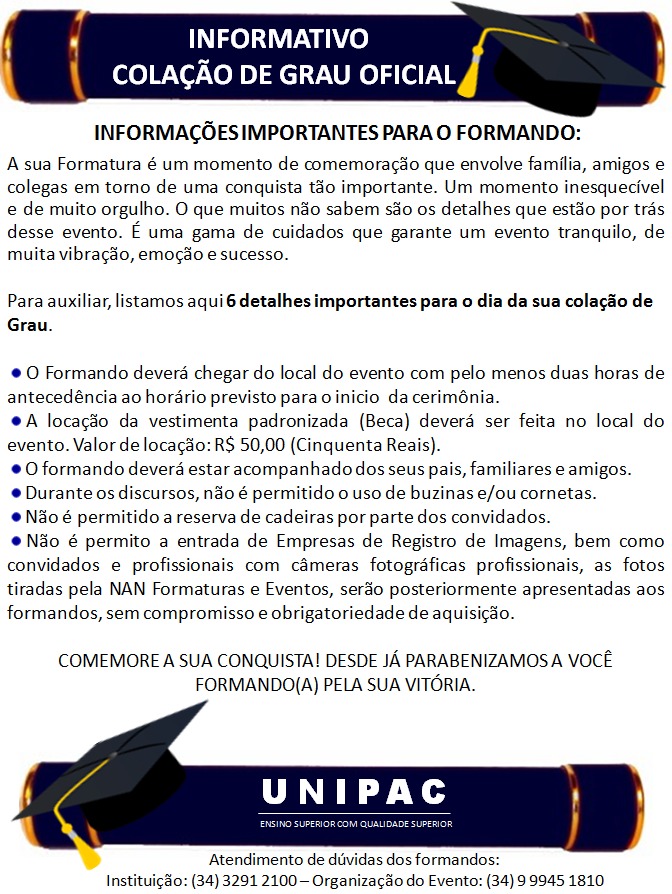 ATENÇÃO FORMANDOS: COLAÇÃO DE GRAU ADIADA!!